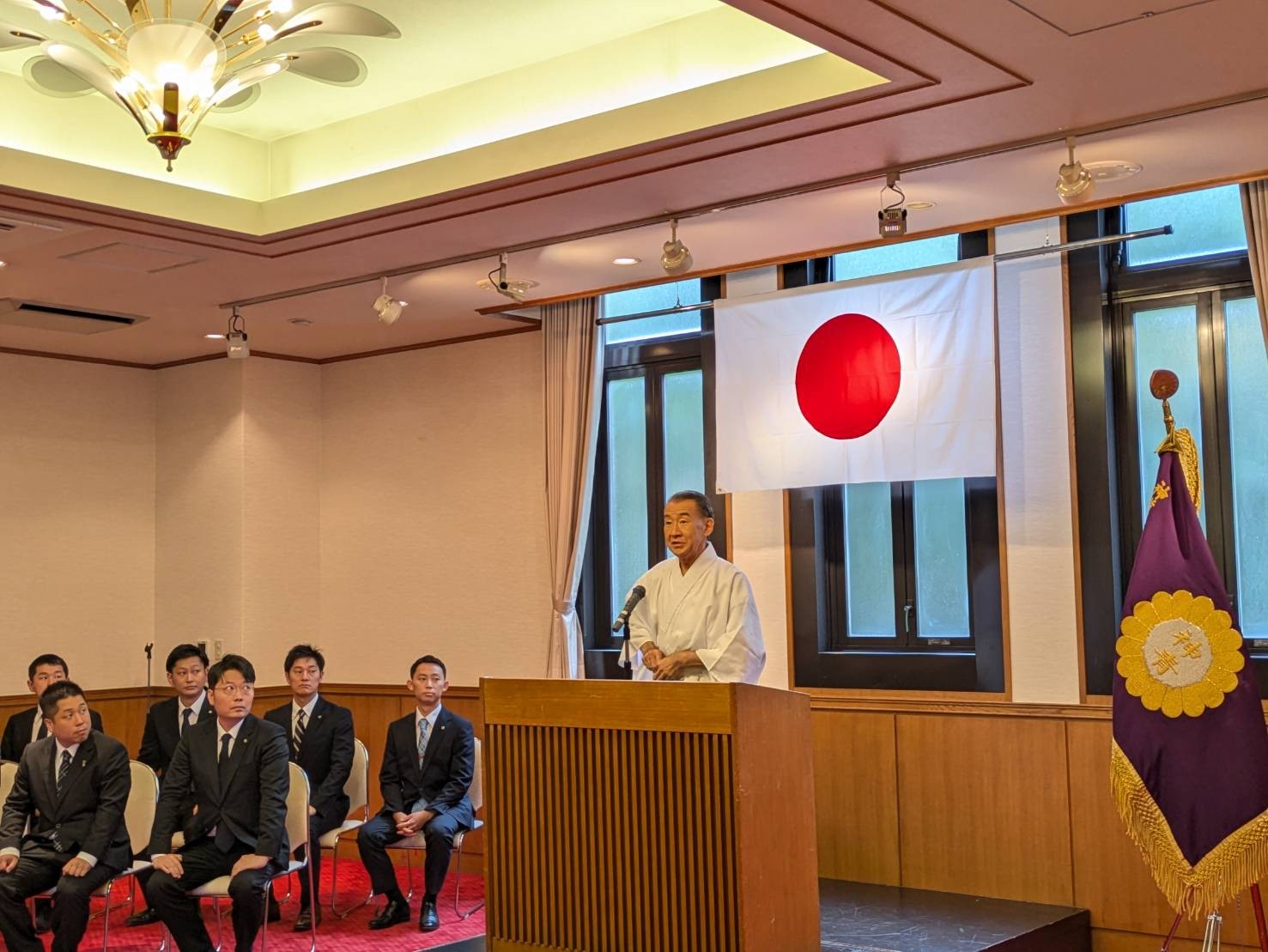 硫黄島のラジオ放送を通じた親子のエピソードや遺骨収集での体験などのお話を拝聴しました。激戦地となった硫黄島において、市丸司令官は「100年後の日本民族のために殉ずることを切望する」と言ひ残し、突撃されました。それから80年を迎へた現在、私たちは当たり前のやうに平和を享受してをりますが、先人の「ゆずり葉」として生かされてゐることを決して忘れてはなりません。