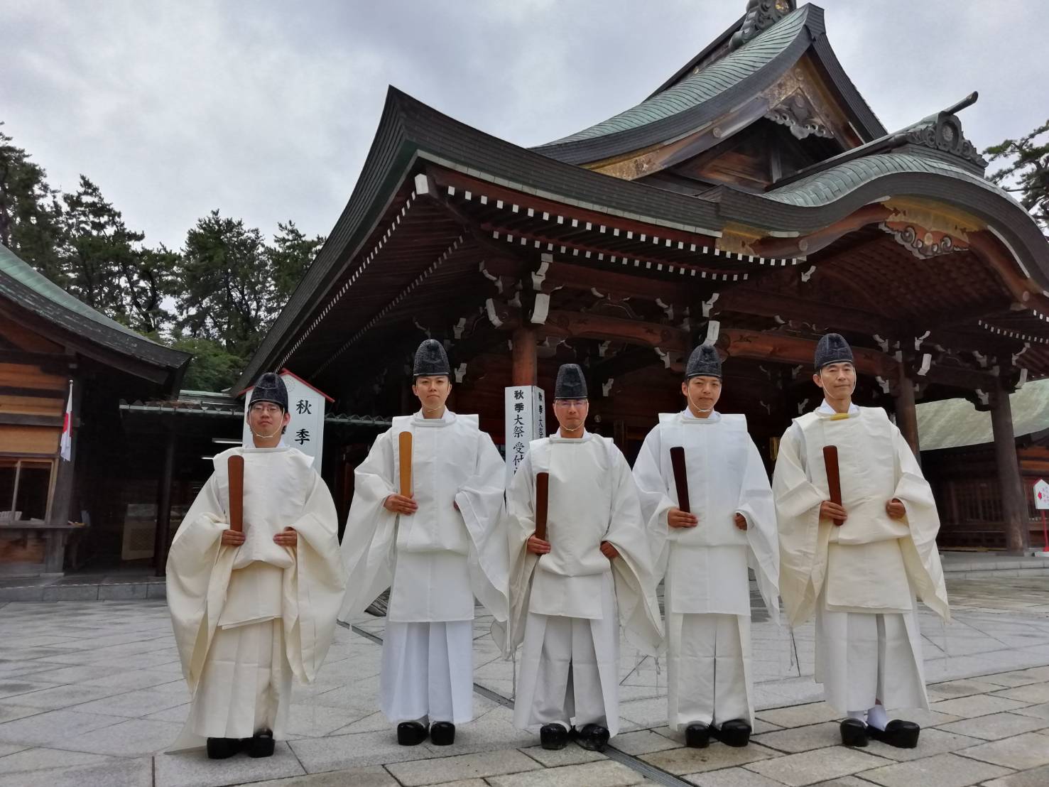 本年は大東亜戦争終結80年にあたり、天皇陛下より畏くも幣帛の御献進を賜り、秋季大祭に合はせて、奉幣大祭も斎行されました。当会より5名が助勤に伺ひ、御英霊の平安を祈念しつつ、衷心より祭典奉仕させていただきました。
